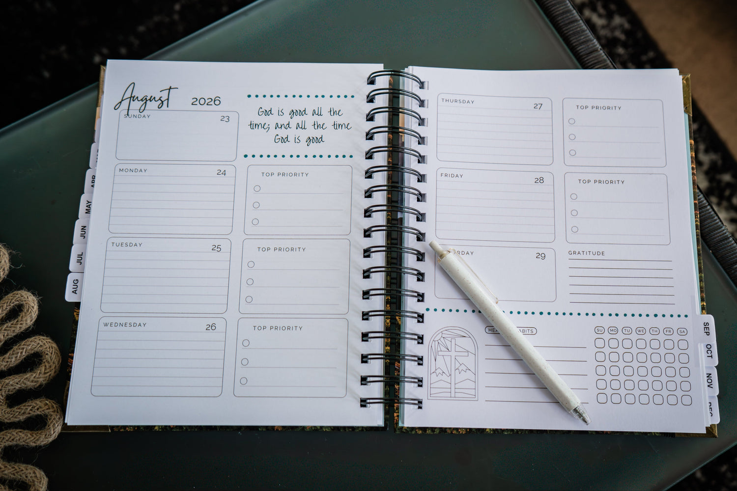Ample space to write in appointments, assignments, and top priority things to do. Keep track of healthy habits you are trying to form.